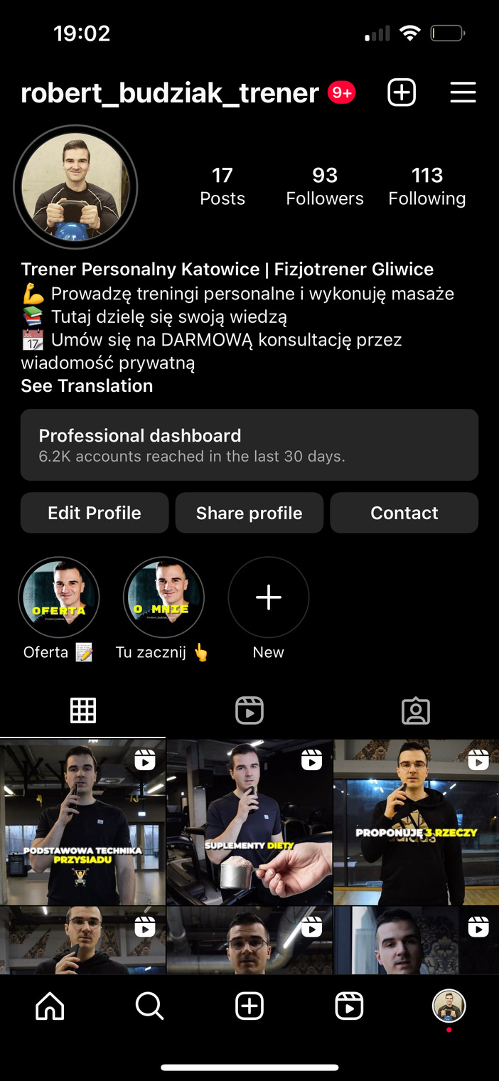 Zmieniliśmy opis w BIO oraz nazwę, która teraz uwzględnia słowa kluczowe takie jak "trener personalny", "Katowice".