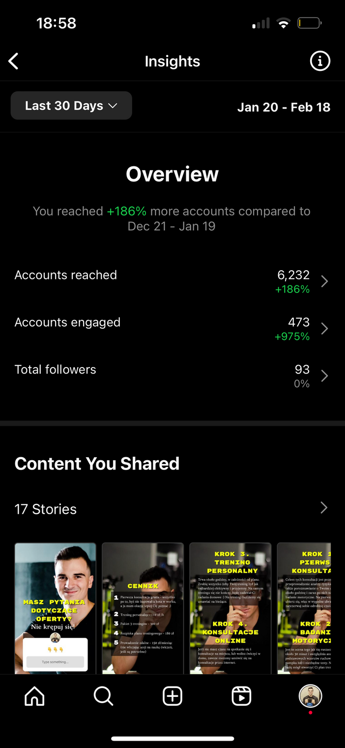 Robert chciał wzmocnić swoją osobistą markę na Instagramie, tworząc edukacyjne treści, które pomogłyby odbiorcom samodzielnie zarządzać treningiem i wpływać na zmianę ich stylu życia.